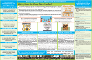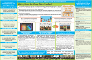 This energetic presentation will have your group laughing at this familiar expression while learning how to overcome the feeling or state of mind behind it. We’ve all heard someone say, “Did you get out of bed on the wrong side?” and let’s be honest, many of us have said it to a co-worker, friend, or loved one… sometimes every morning.